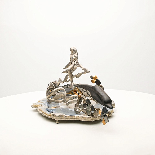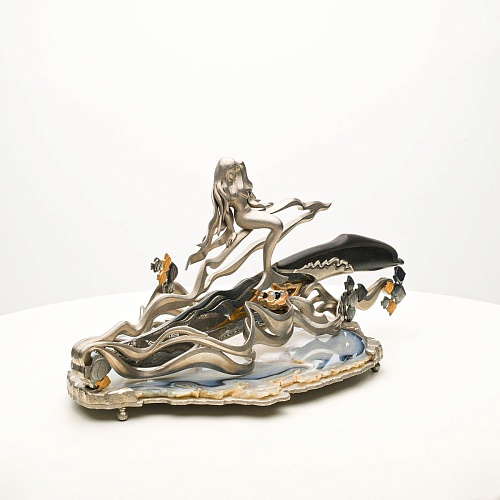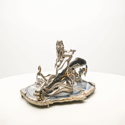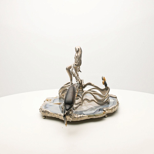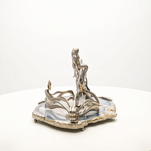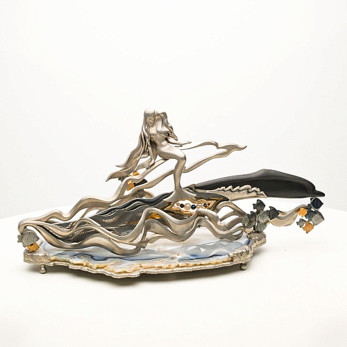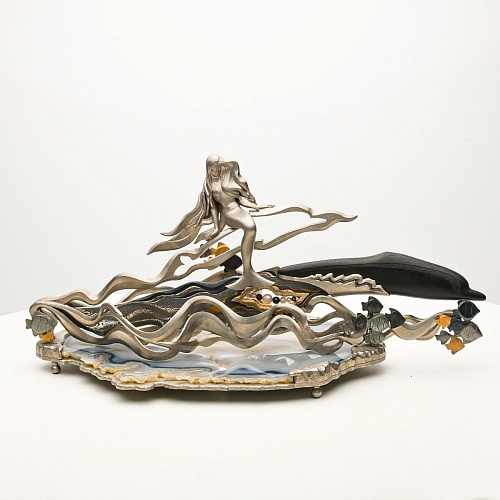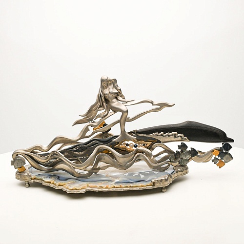 Чарующий и нежный, легкий и озорной образ нимфы с распущенными волосами рядом с надежным дельфином – аллегорией спасения, свободы и благородства – вызывают самые прекрасные чувства и эстетическое наслаждение.