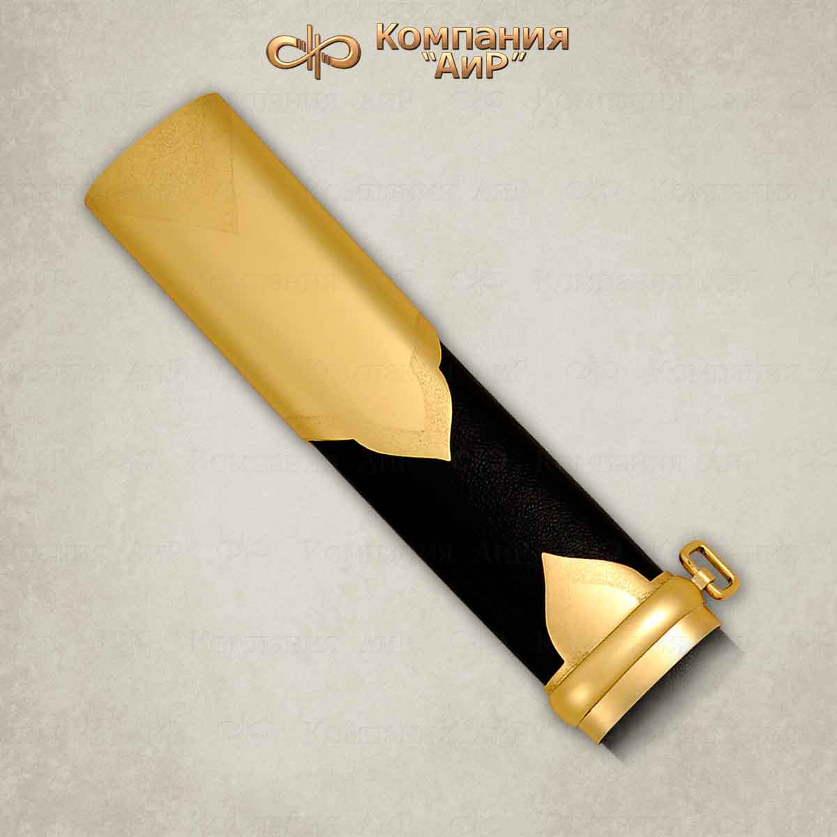 Ножны сабли изготовлены из бука, обиты натуральной телячьей кожей, они имеют такой изгиб, чтобы свободно размещать искривленный клинок в ножнах. Устье, наконечник и обоймица ножен также изящно украшены восточным и растительным орнаментом, поверхность декоративных элементов обработана в технике шабрения, что придает всему изделию вид дорогой и старинной сабли.