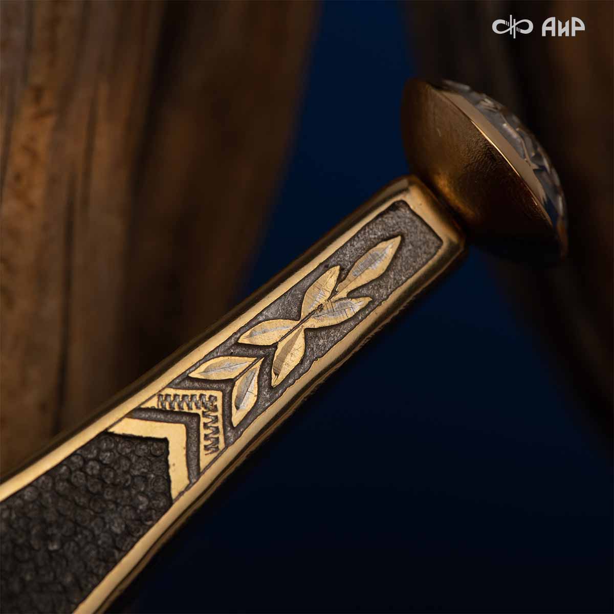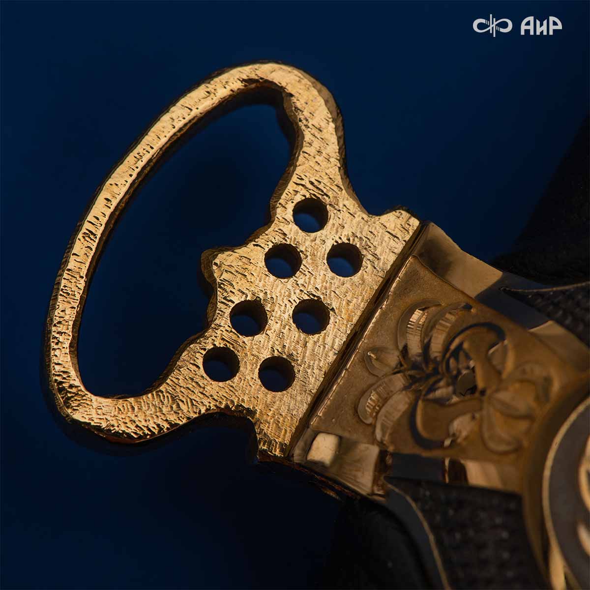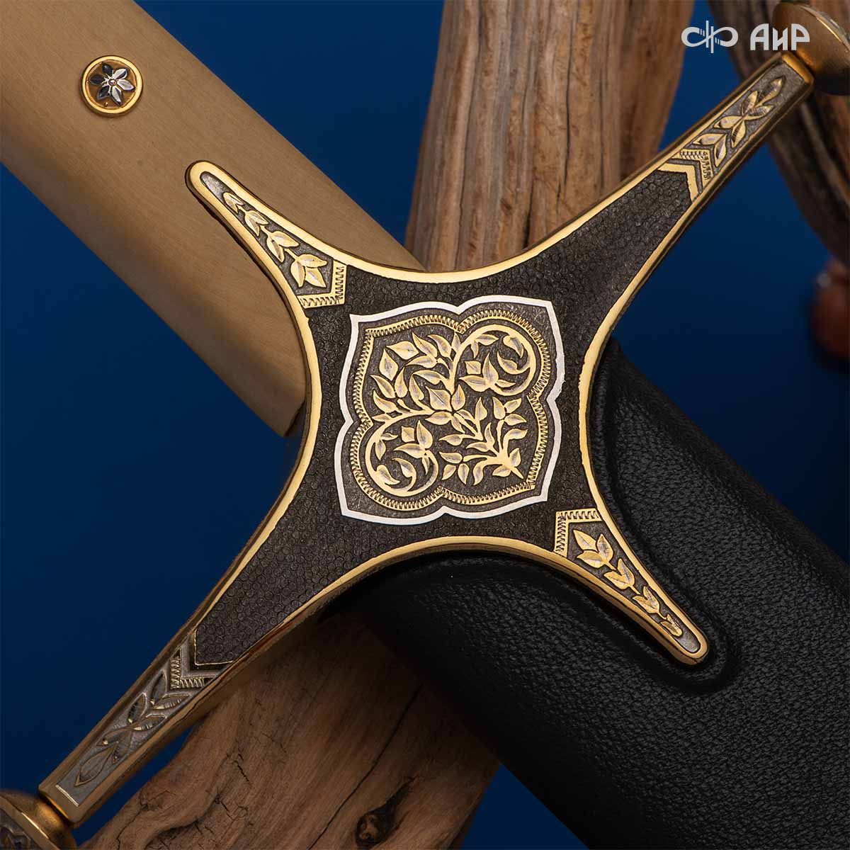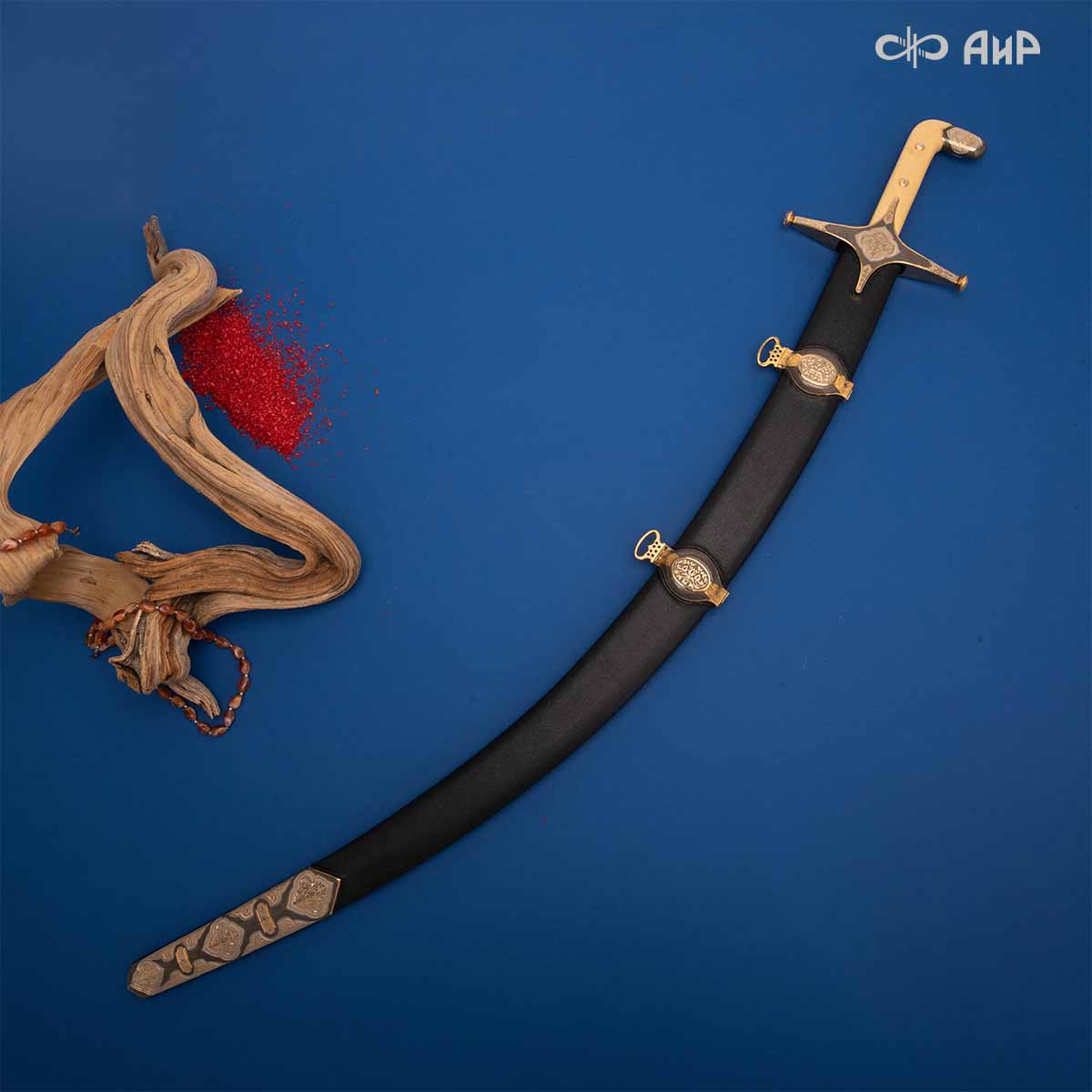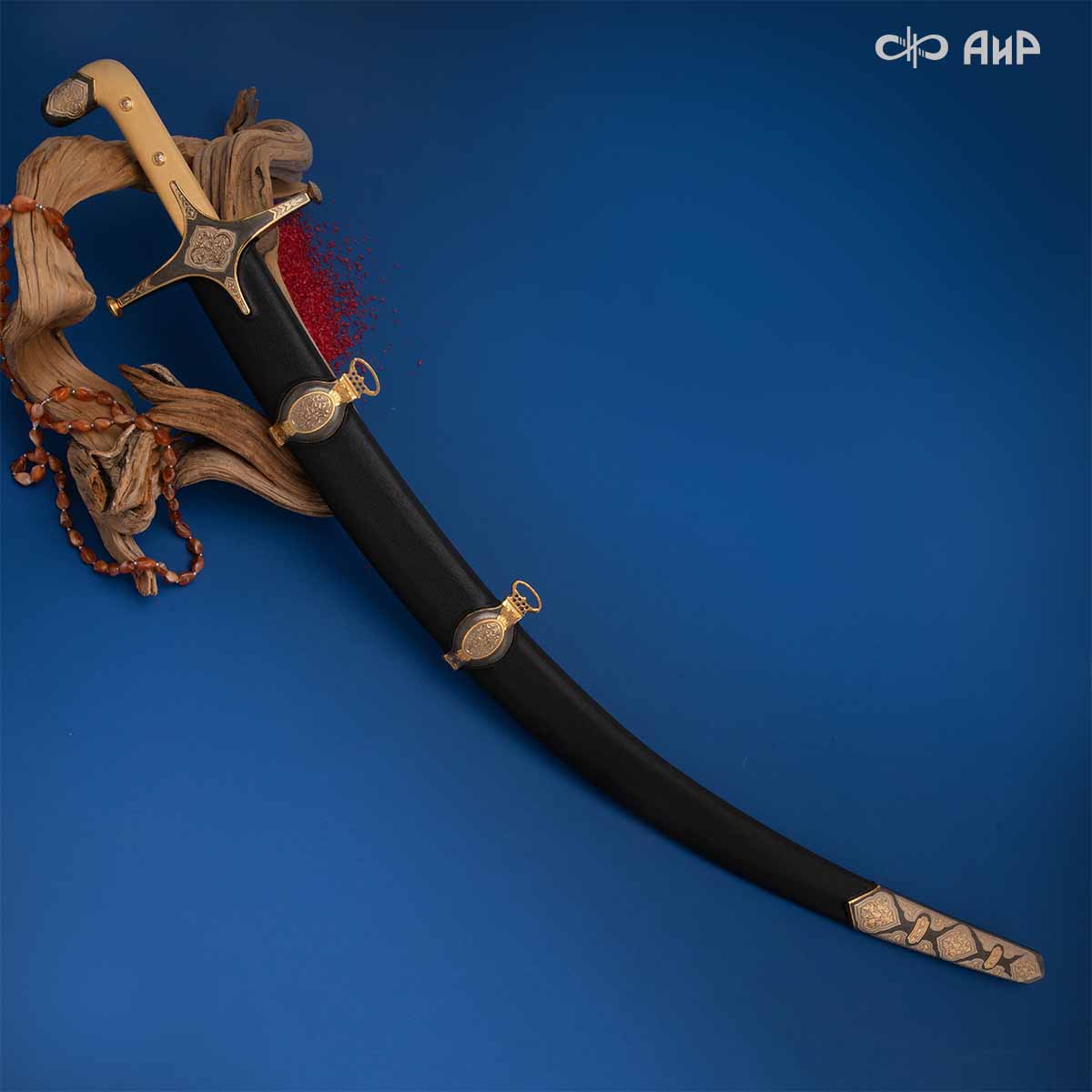 Сабля "Восточная", изготовленная мастерами Компании «АиР», представляет собой сувенирное длинноклинковое оружие, украшенное в стиле златоустовской гравюры на металле.