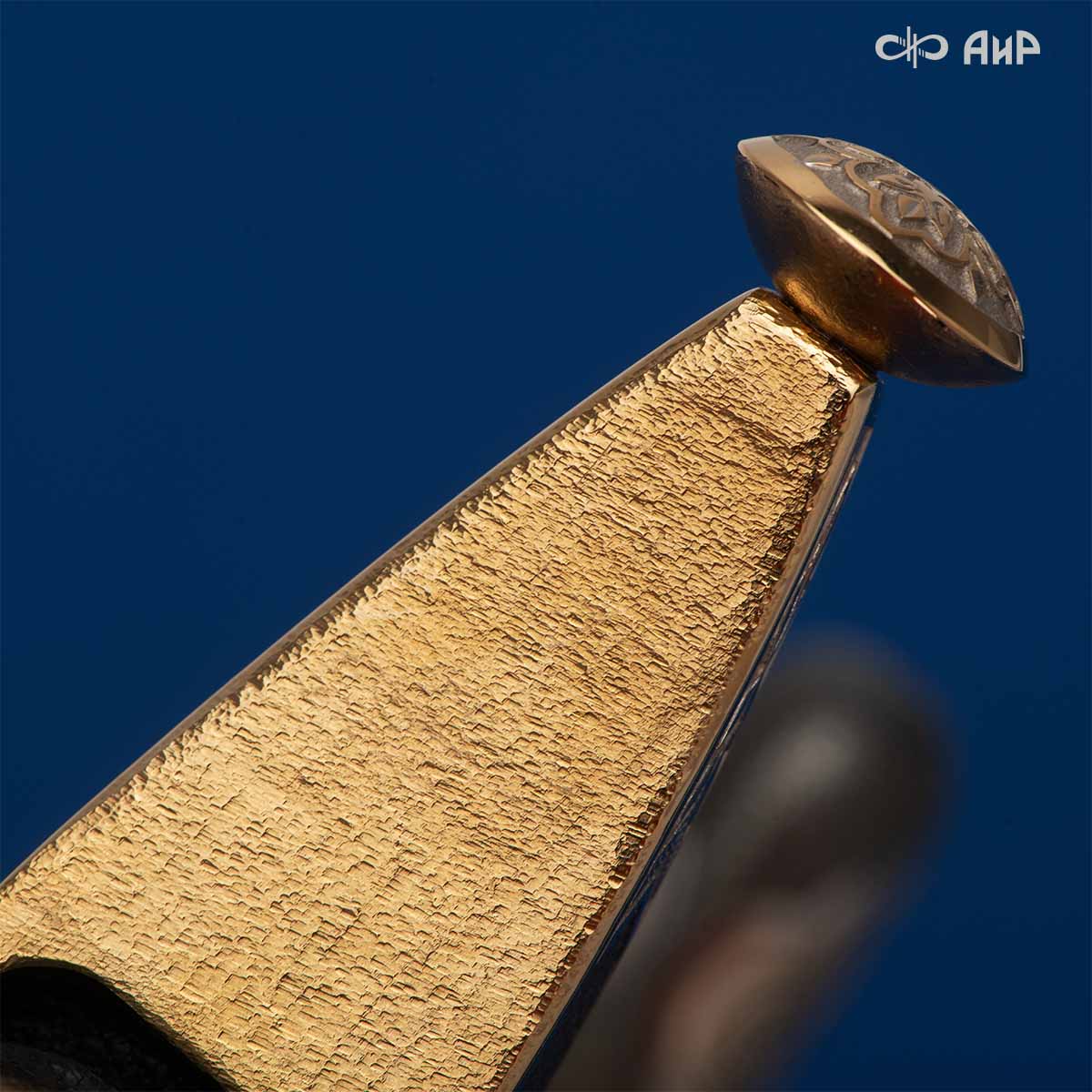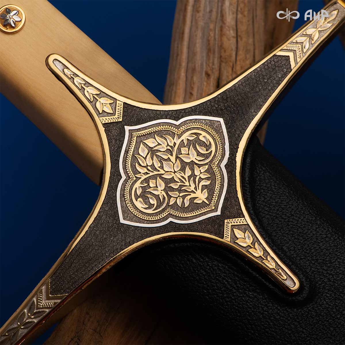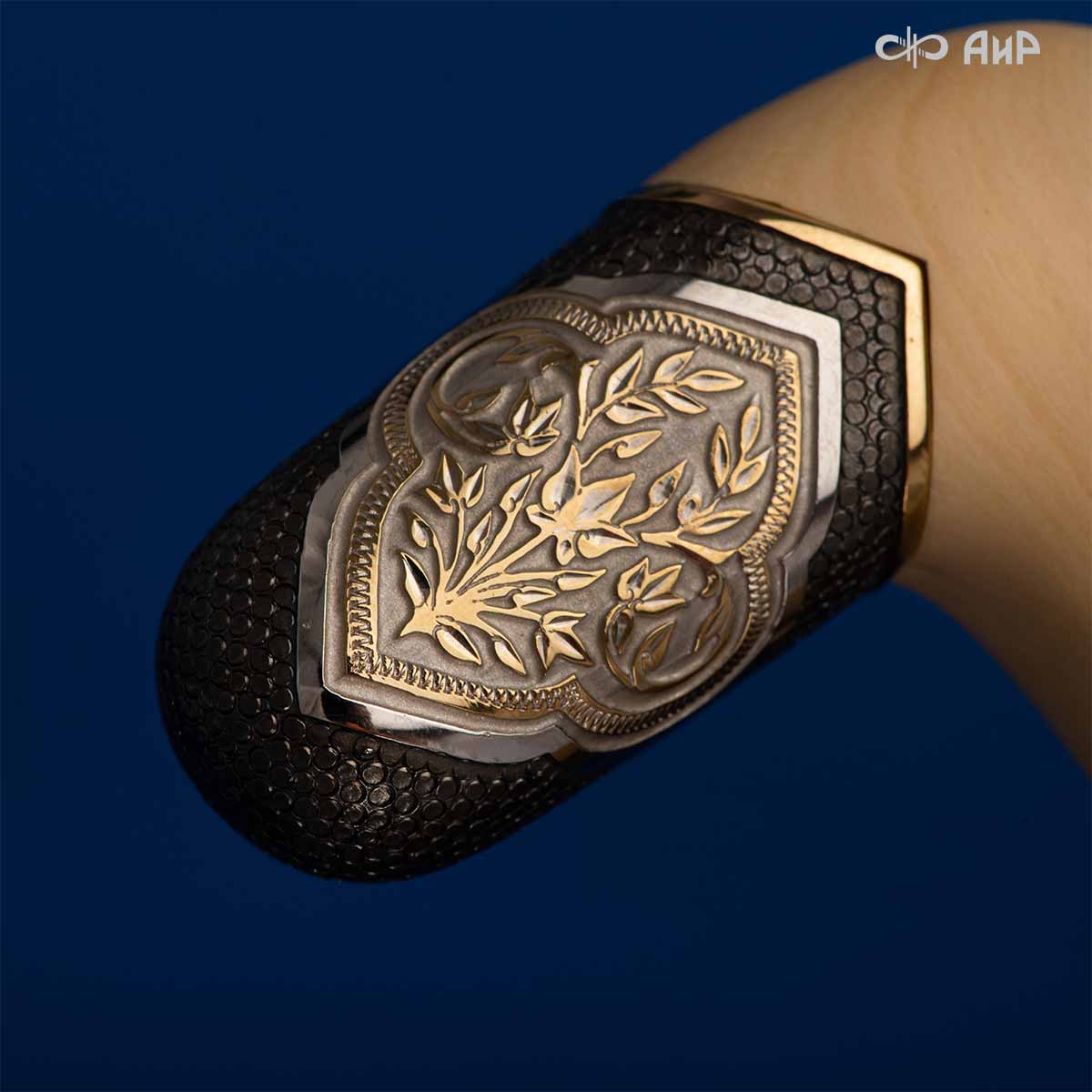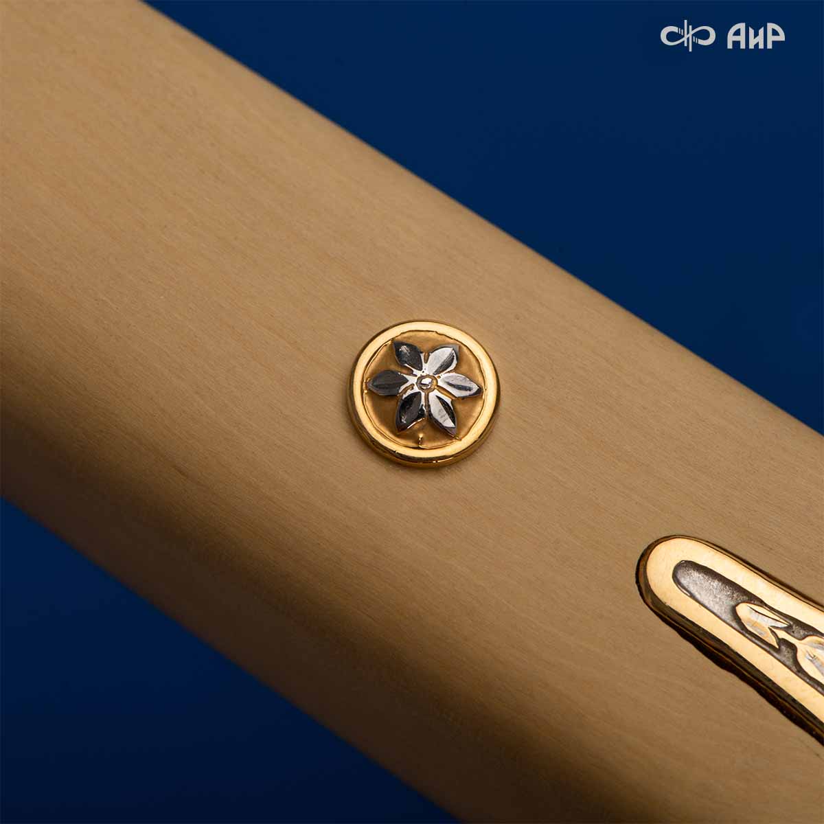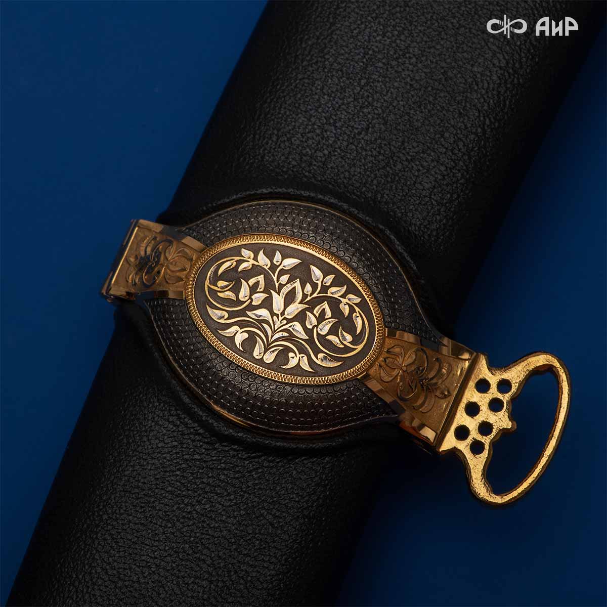 Сабля "Восточная", изготовленная мастерами Компании «АиР», представляет собой сувенирное длинноклинковое оружие, украшенное в стиле златоустовской гравюры на металле.