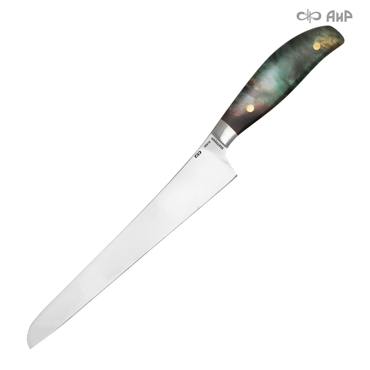С помощью этого ножа можно нарезать ломтики любой толщины из ветчины, колбасы, мяса и рыбы, а также фруктовых пирогов и бисквитов. Кастомная заточка