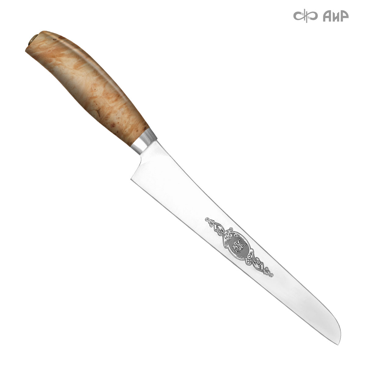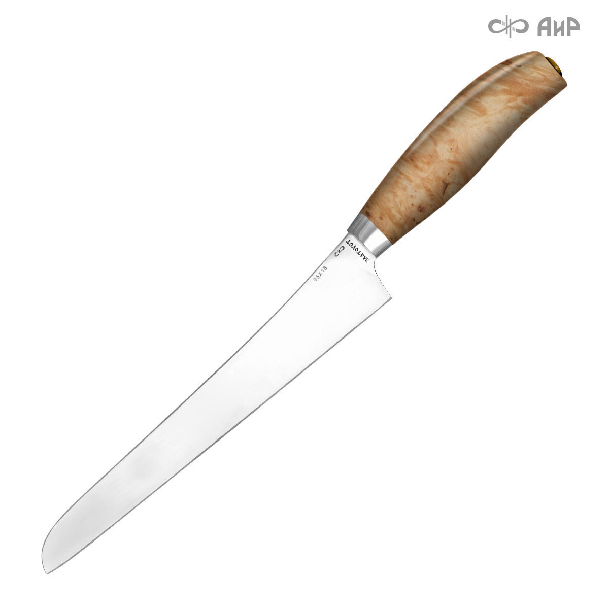 С помощью этого ножа можно нарезать ломтики любой толщины из ветчины, колбасы, мяса и рыбы, а также фруктовых пирогов и бисквитов. Кастомная заточка.