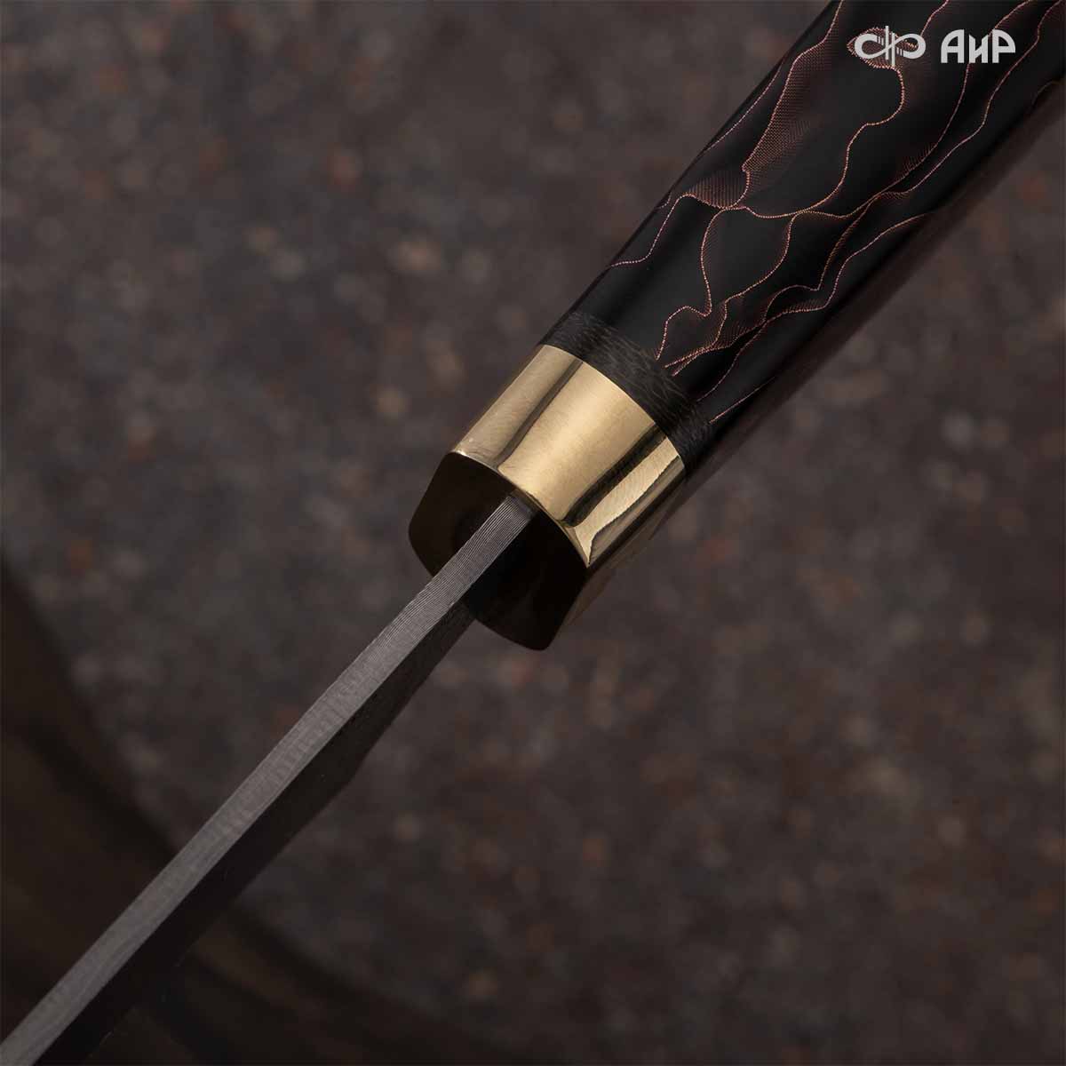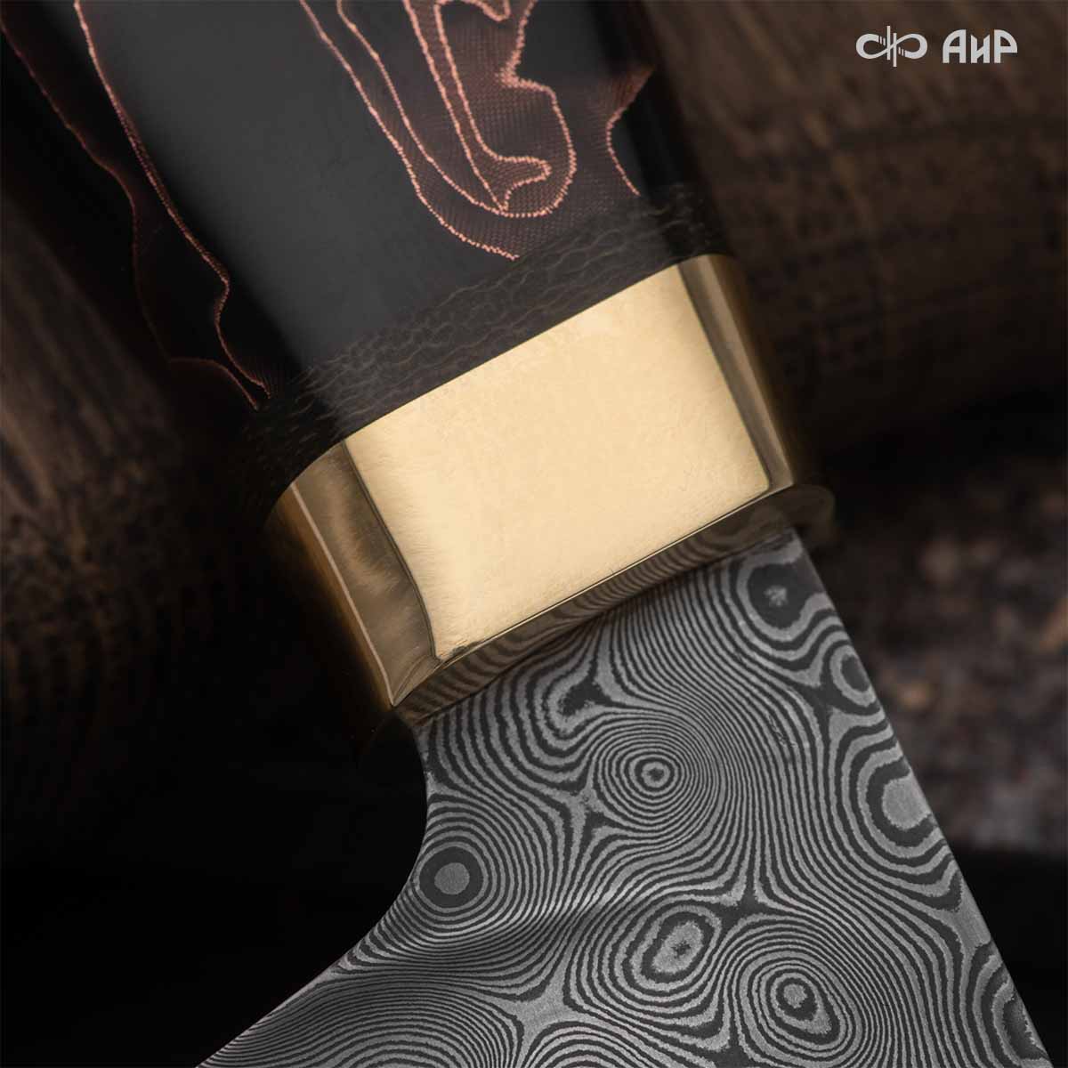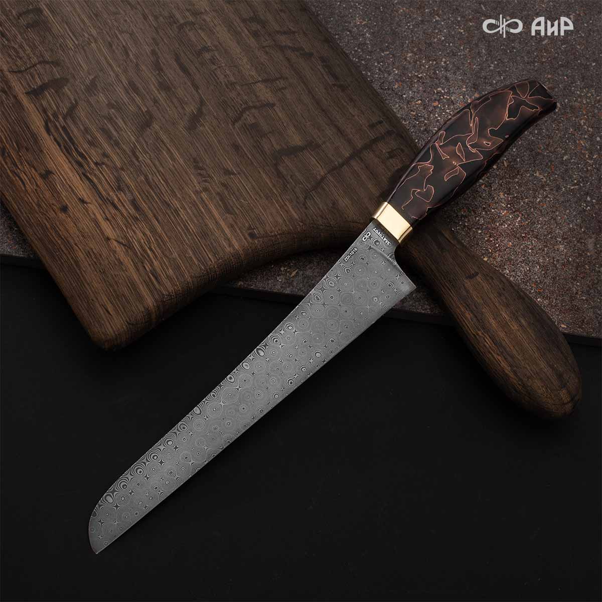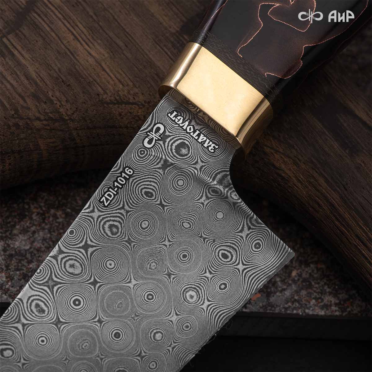 Для нарезки ветчины (композит с медной микросеткой волны, латунь) дамасская сталь ZDI-1016, узор пирамида нью