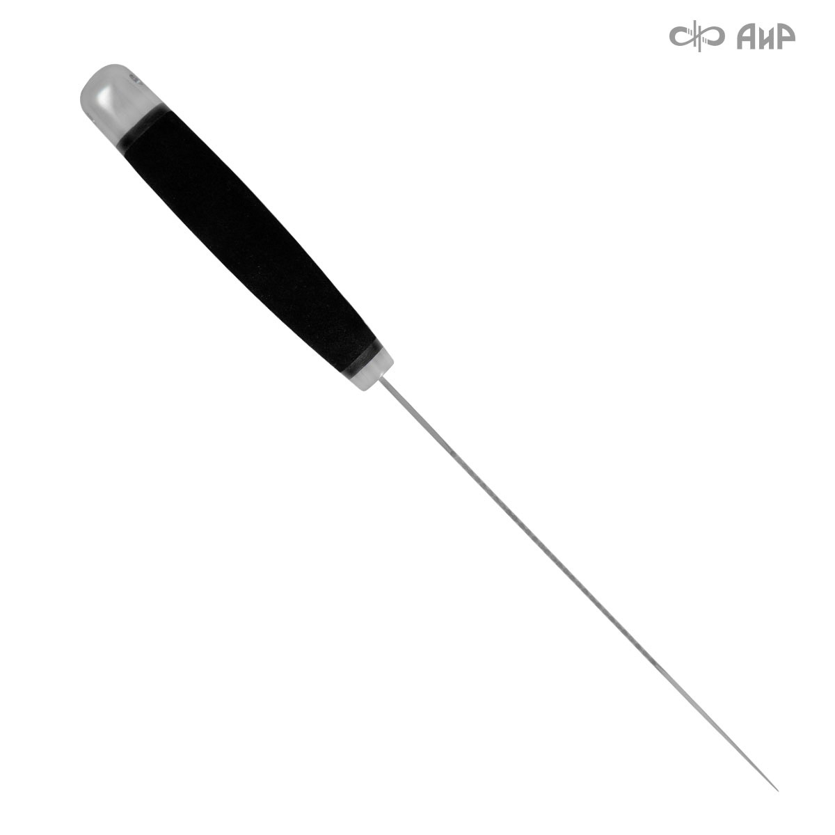 Большой разделочный нож для крупной рыбы с узким клинком и пилообразной заточкой на обухе для чистки чешуи. Клинок толщиной 2 мм имеет прямые спуски, образующие тонкое, прекрасно режущее лезвие. Классическая форма рукояти уверенно и прочно лежит в любой ладони. А оптимальной величины гарда не дает соскользнуть пальцам при резах от себя. Монтаж рукояти сквозной, неразборный. Отличный выбор для разделки крупной рыбы.