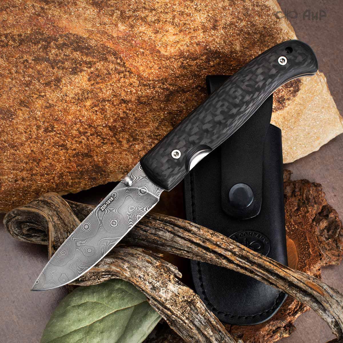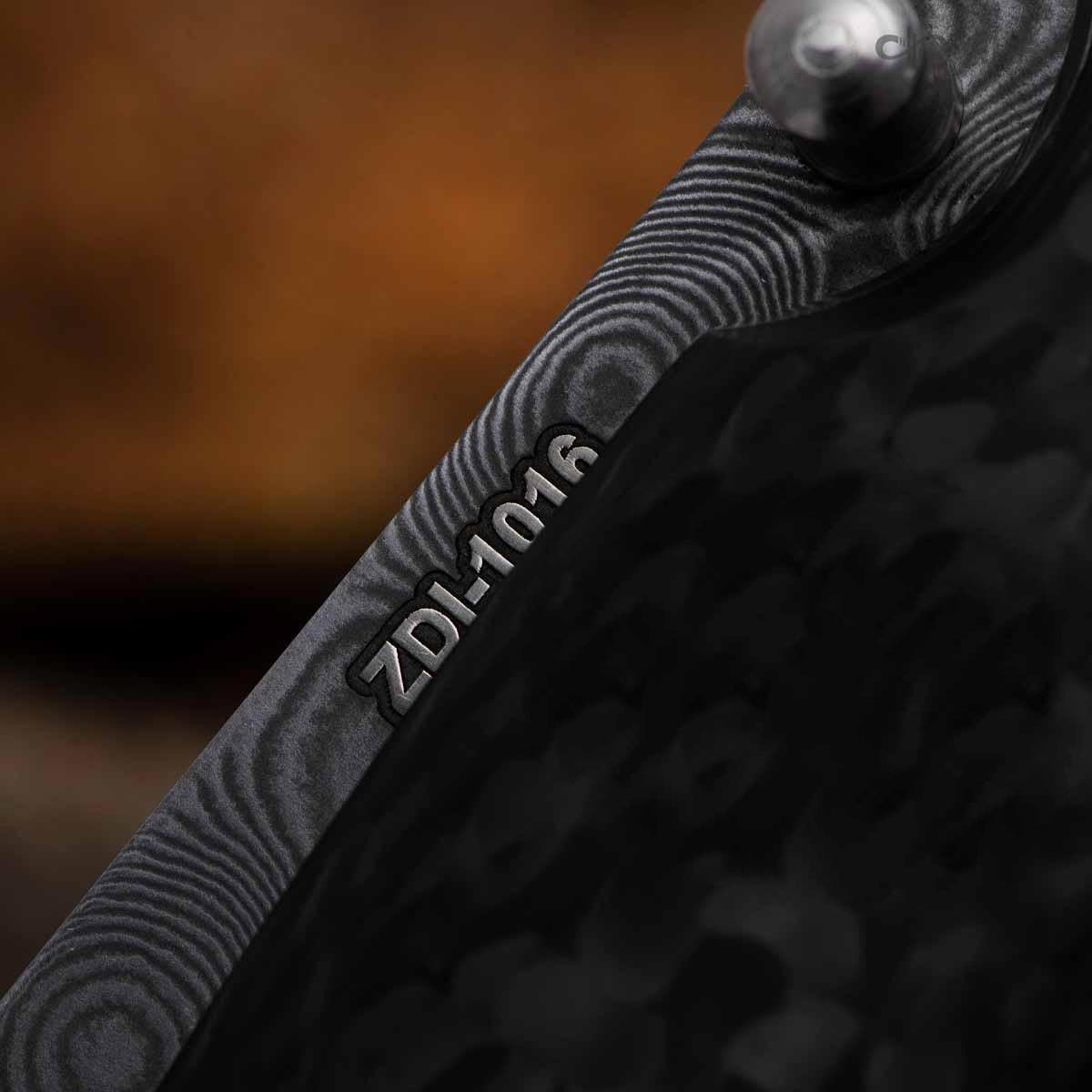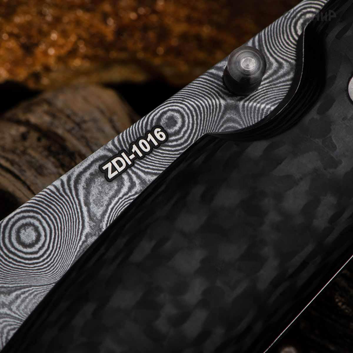 Складной (карбон черный) дамасская сталь ZDI-1016, узор пирамида