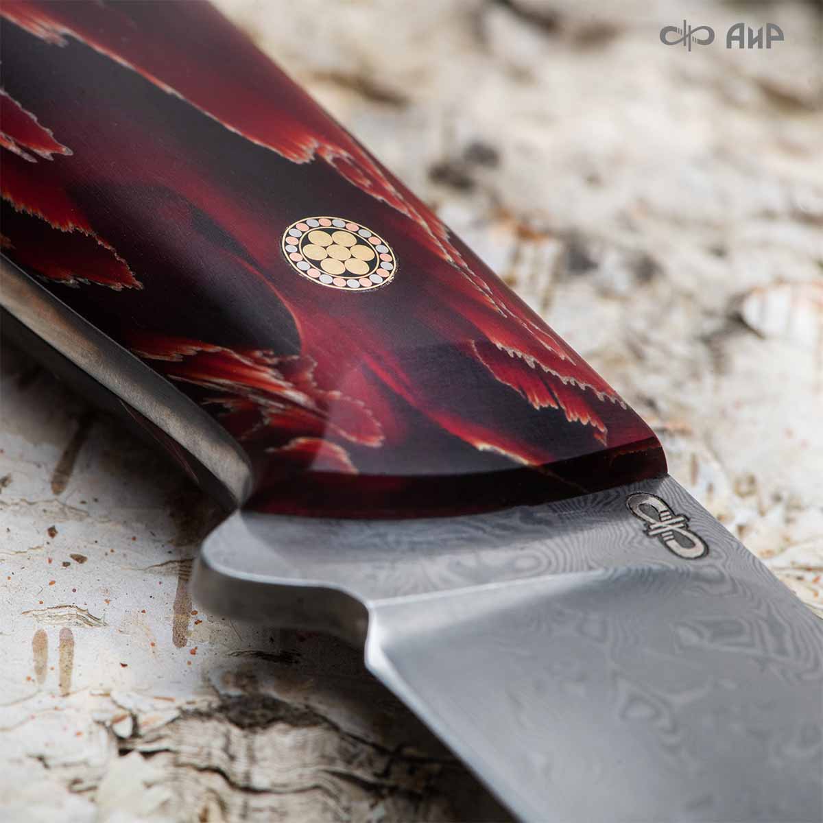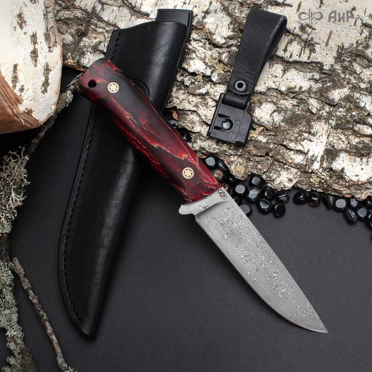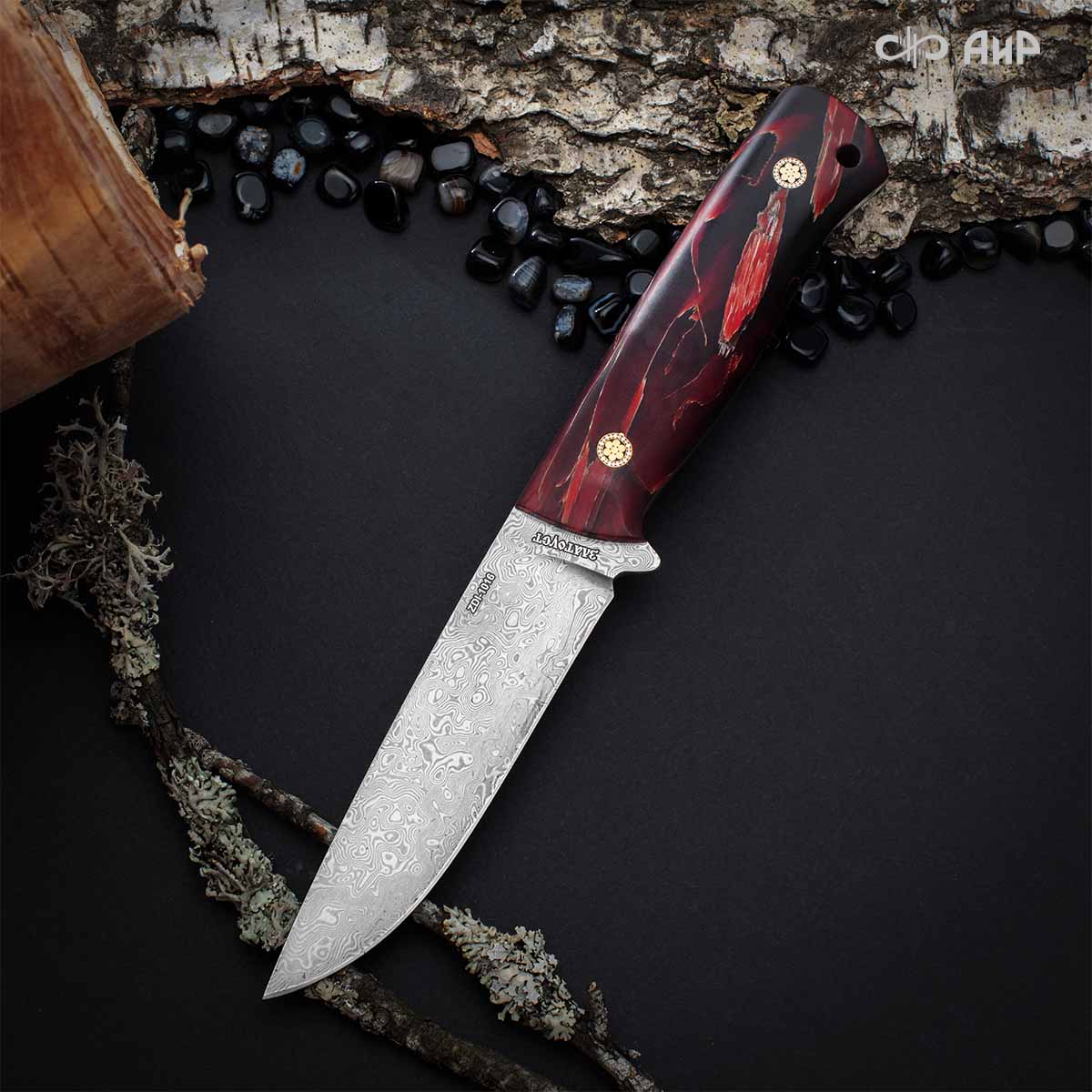 Стриж (композит растительные волокна красный, мозаичные пины) дамасская сталь ZDI-1016