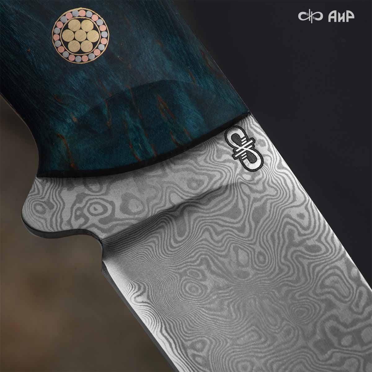 Стриж (стабилизированная карельская береза зеленая) дамасская сталь ZDI-1016