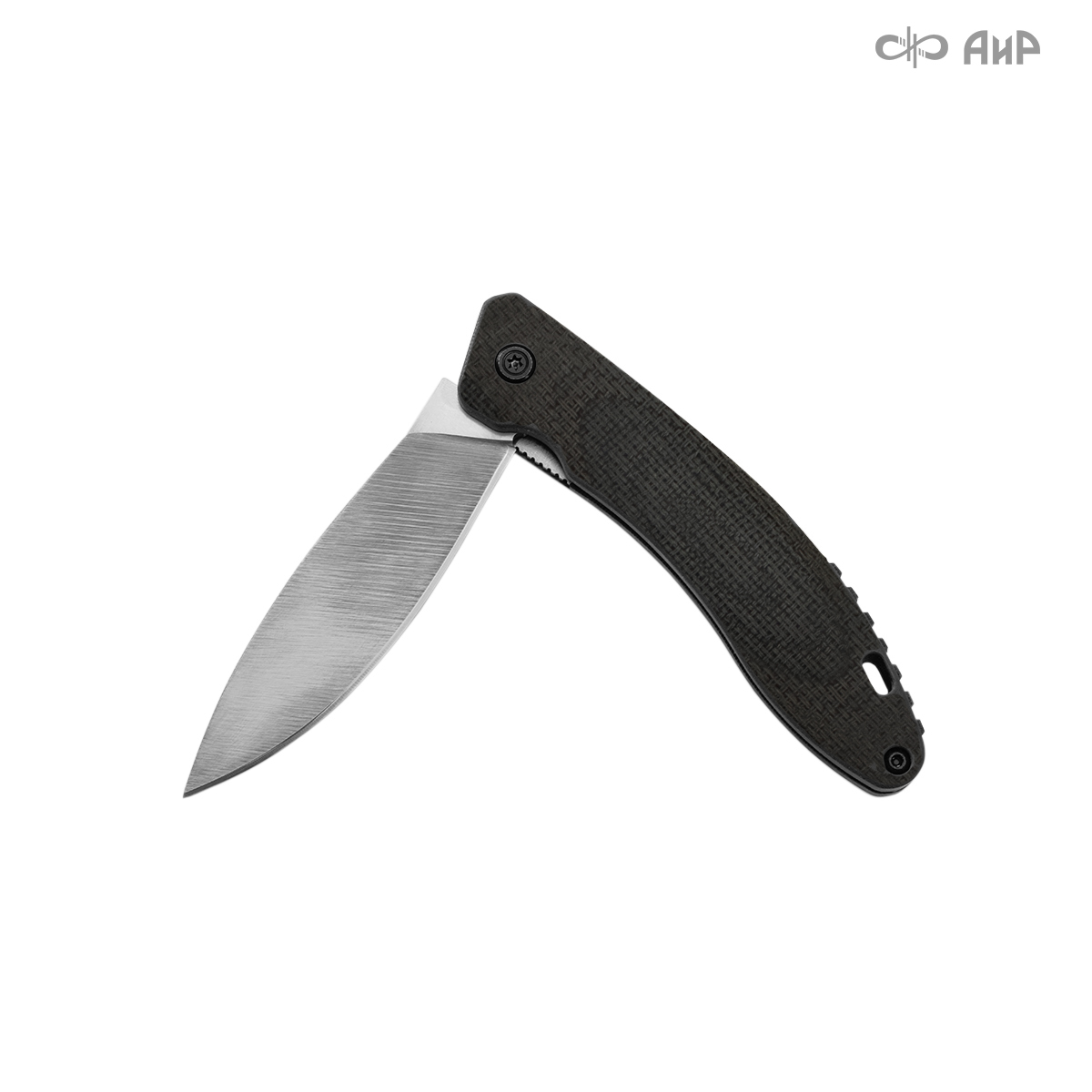Форму клинка «Хантер» унаследовал от «Канадского малого (траппера)» – каплевидный клинок с прямыми спусками от обуха, который демонстрирует эффективность как в резе, так и в уколе. Клинок из нержавеющей стали стандартно выполняется с полировкой «сатин». Примечательно, что логотип производителя и марка стали нанесены на обух ножа, они видны даже в закрытом положении.