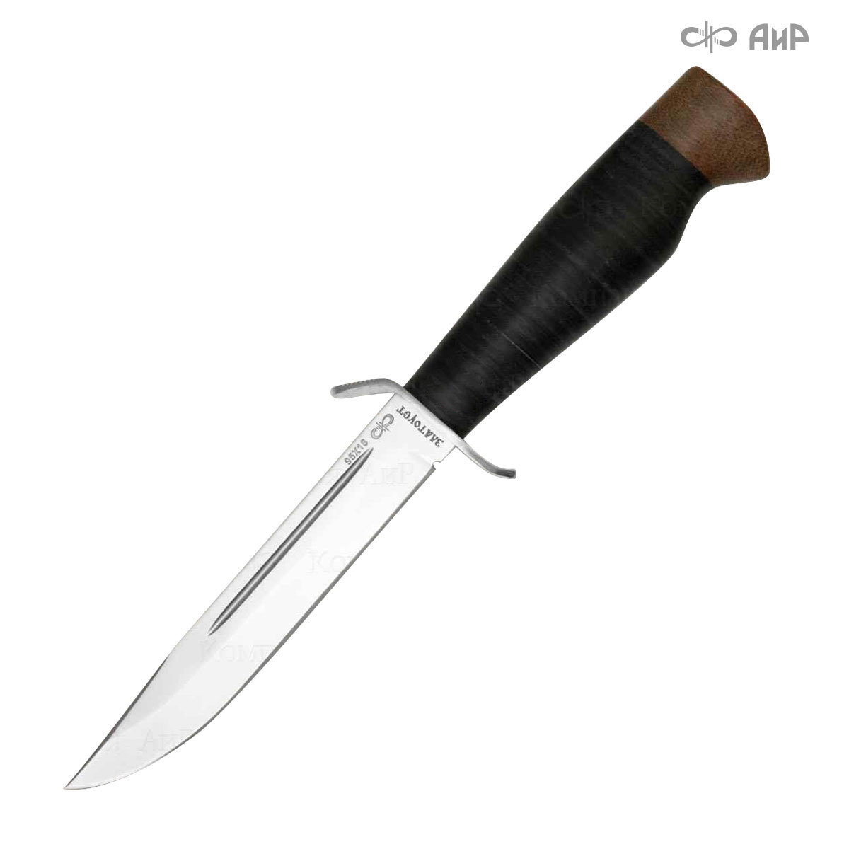Универсальный, очень легкий нож средней величины с развитой стальной гардой классического типа. Нож прекрасно сбалансирован. Неширокий клинок толщиной 2,6 мм, с обушком популярной формы «лещиком», имеет вогнутые линзовидные спуски на половину ширины клинка, образующие прекрасно режущее лезвие. На голомени с обеих сторон клинка выбраны узкие долы, добавляющие жесткости клинку. Небольшая эргономичная рукоять на удивление хорошо ложится даже в большую ладонь. А расширенная головка рукояти хорошо способствует этому. Монтаж клинка сквозной, неразборный. Прототипом ножа является «Нож разведчика» образца 1940 г. Заслуженно пользуется популярностью у широкого круга покупателей.
