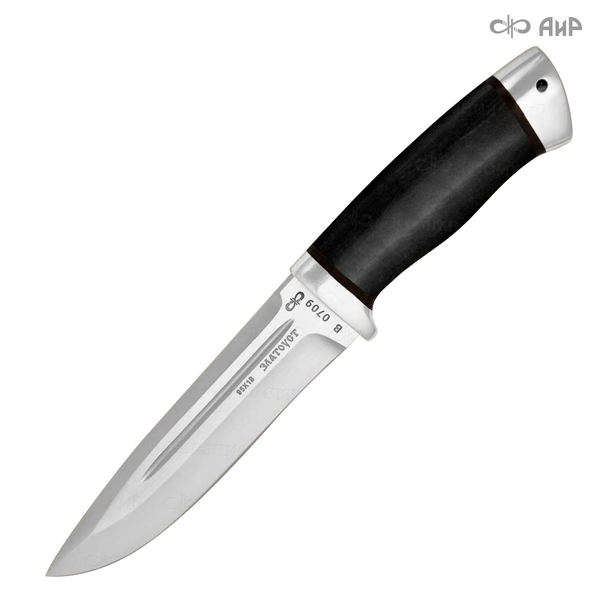 Образец является ножом охотничьим и относится к гражданскому холодному оружию.Внимание! С 27.11.2017 г. приостановлена доставка гражданского холодного оружия в населенные пункты по всей территории Российской Федерации, ранее осуществляемая ФГУП «Главный центр специальной связи». Данный нож можно приобрести на условиях самовывоза только в головном офисе Компании «АиР» в г. Златоусте (отдел маркетинга, график: пнд-птн, 8.00-17.00 ч.).