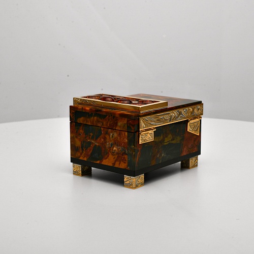 Шкатулка, изготовленная из красивейшей яшмы и янтаря, декорированная в стиле златоустовской гравюры, послужит прекрасным предметом для хранения женских украшений. Срок изготовления 25-40 рабочих дней, 100% предоплата.