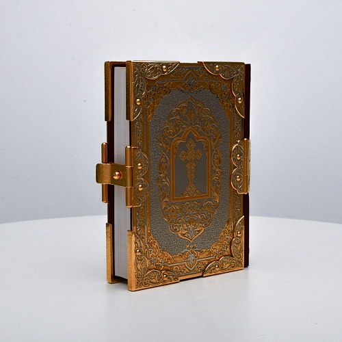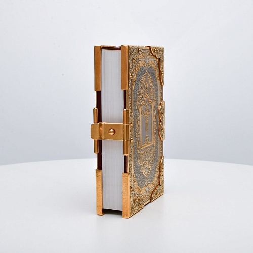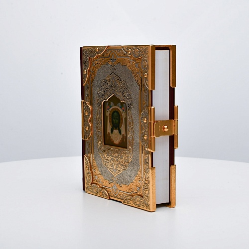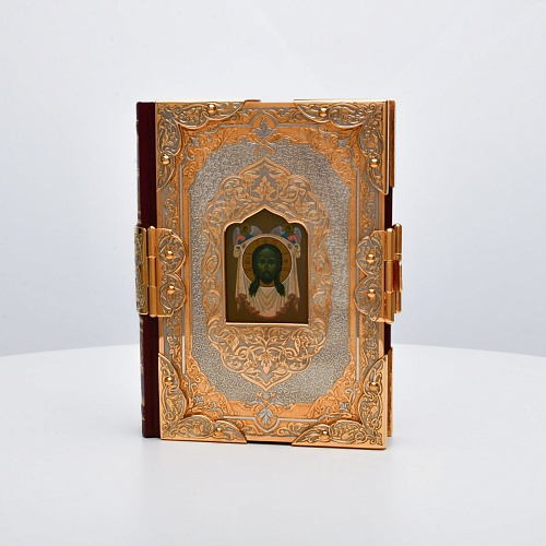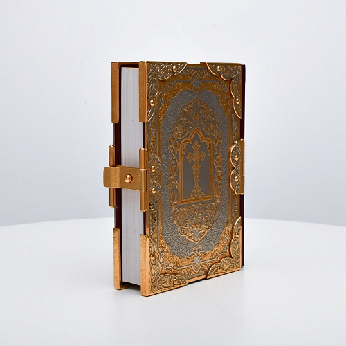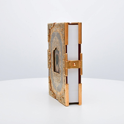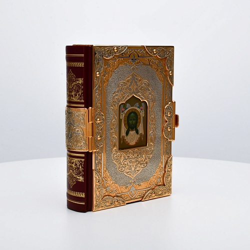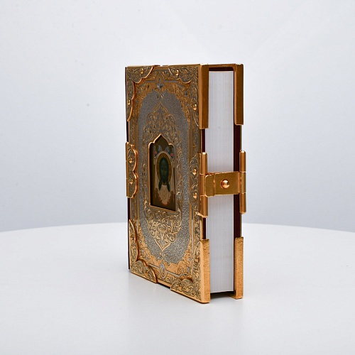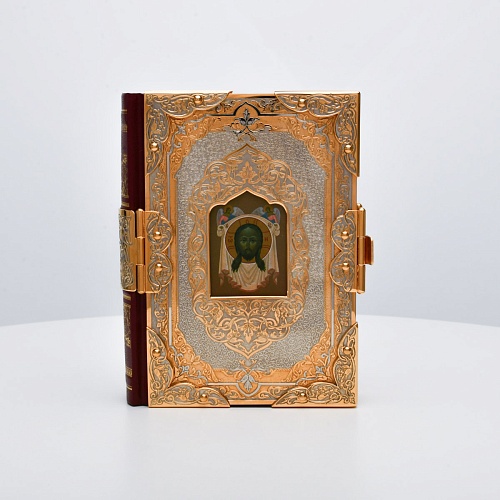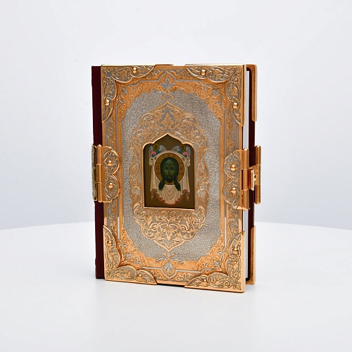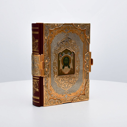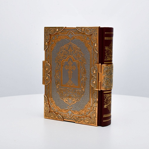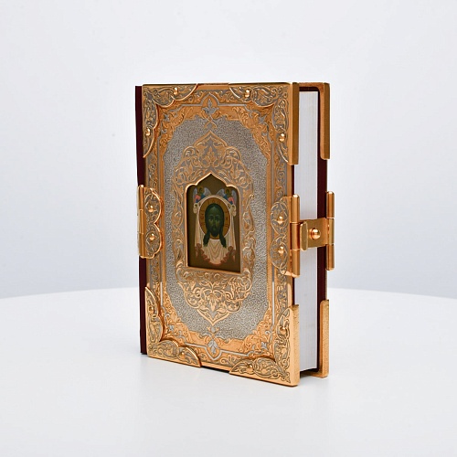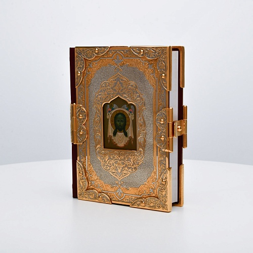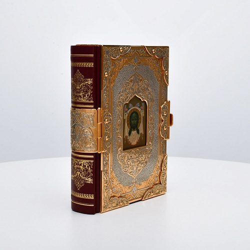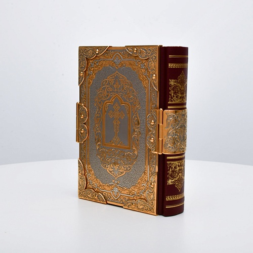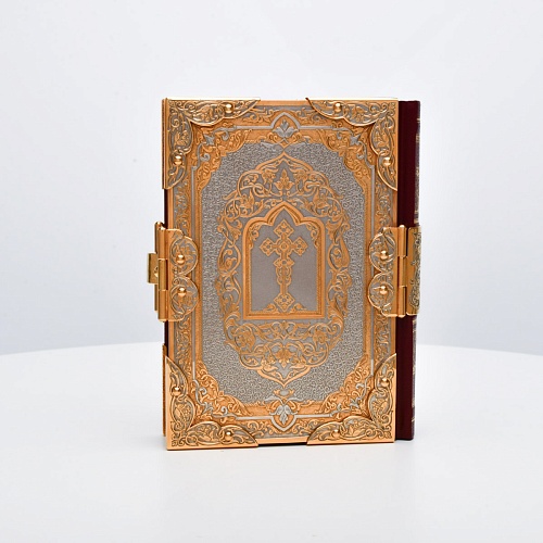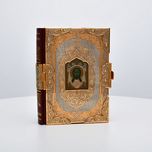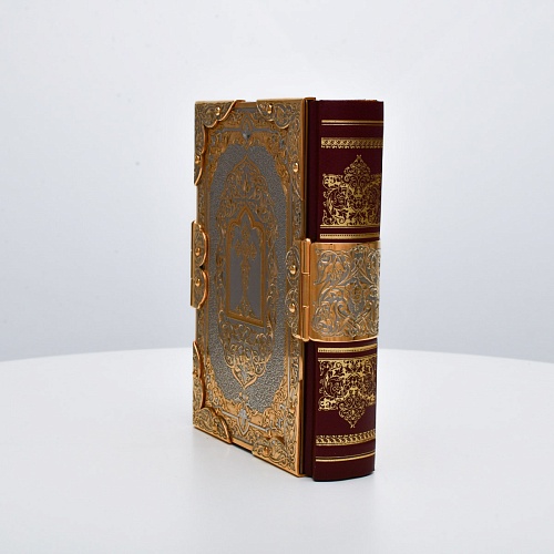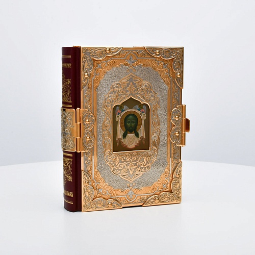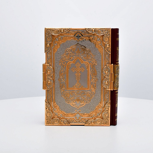 Оклад для этой книги изготовлен в стиле златоустовской гравюры на металле, покрыт золотом высшей пробы, украшен ювелирными камнями. Узор на лицевой и оборотной сторонах оклада выполнен в христианской символике.