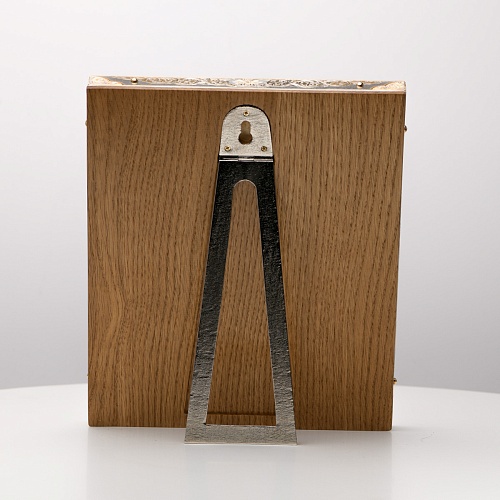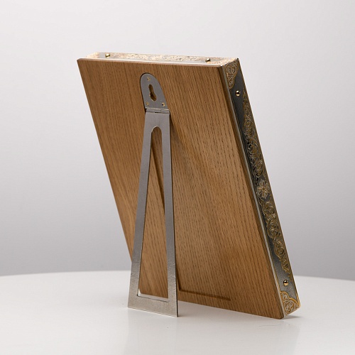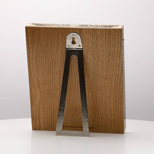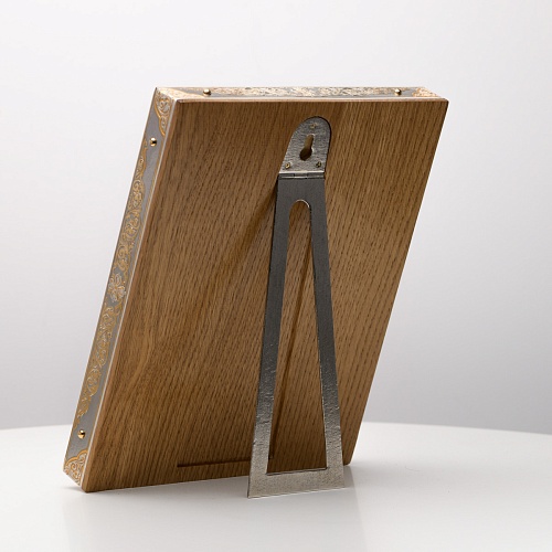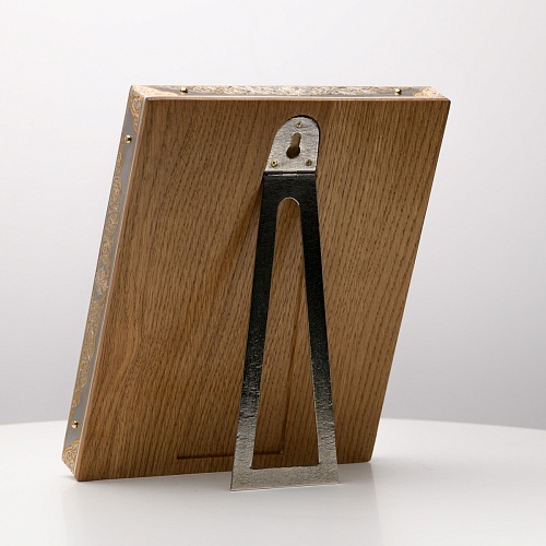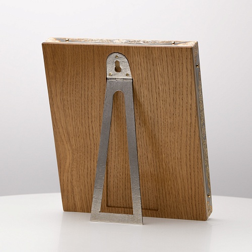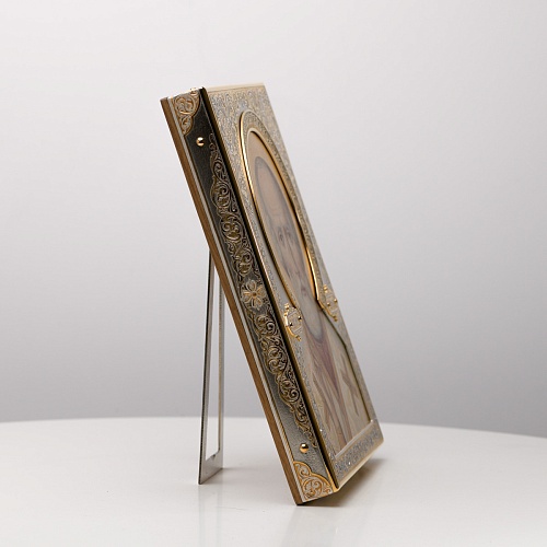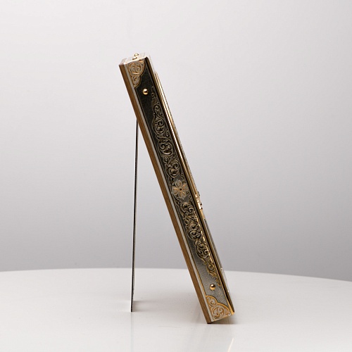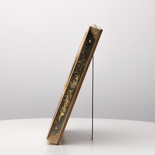 Оклад иконы Святителя Николая Чудотворца, выполненный мастерами компании “АиР” в г. Златоуст, придает ей особую ценность и торжественность. Оклад покрыт золотом высшей пробы (999,9°) толщиной в 1 микрон, что подчеркивает высокое мастерство и искусство создателей. Золотое покрытие не только украшает икону, но и символизирует вечность и непреходящую ценность духовного наследия. Оно защищает икону от внешних воздействий и придает ей дополнительное сияние, усиливая впечатление от образа святого. Такой оклад делает икону не только объектом религиозного почитания, но и произведением искусства, достойным восхищения и уважения.|