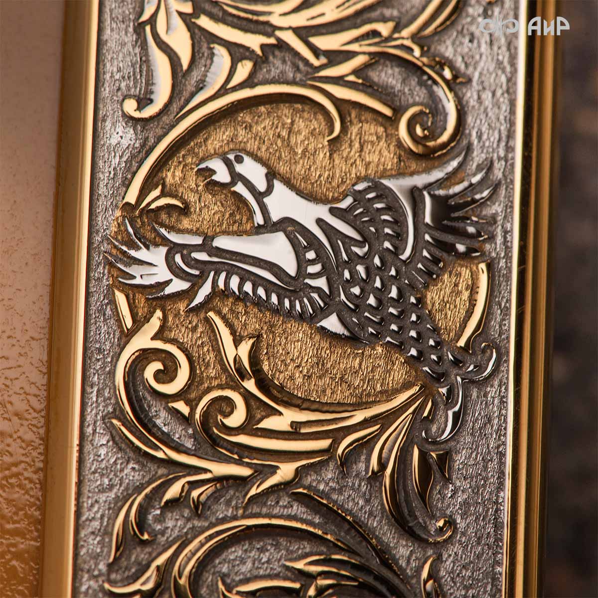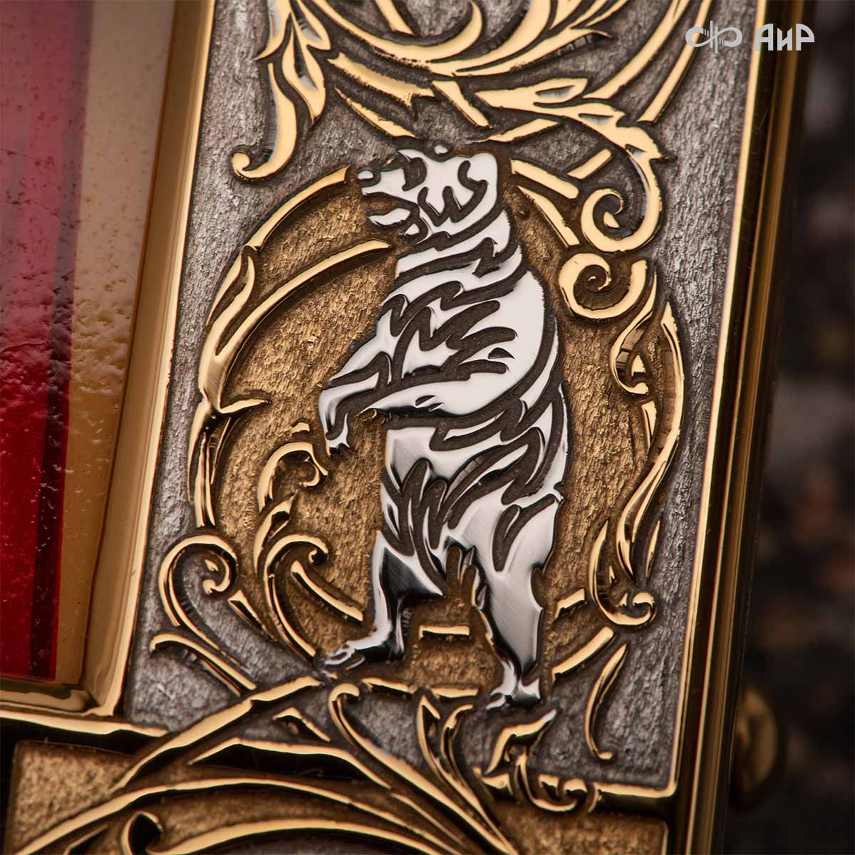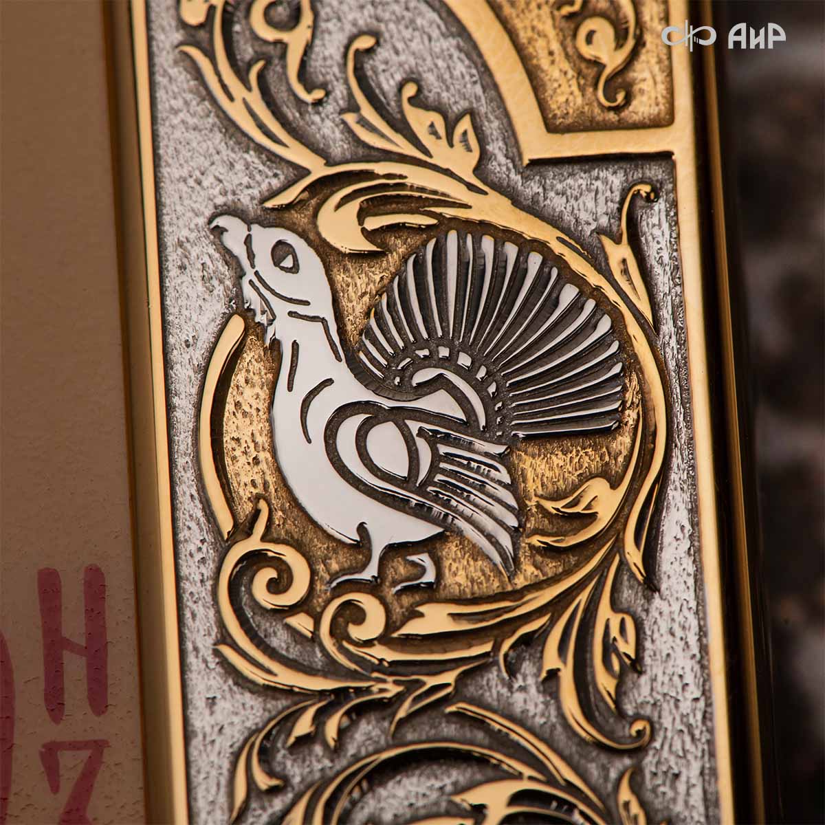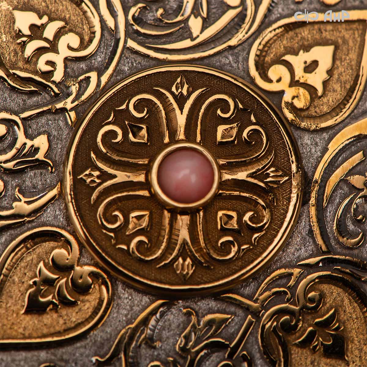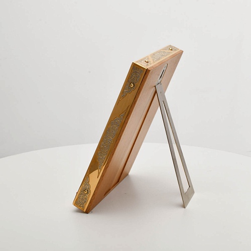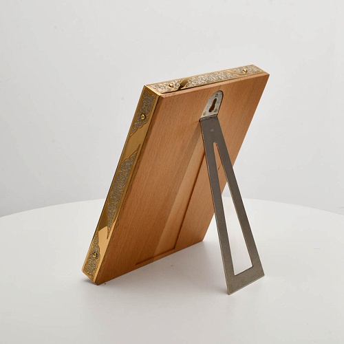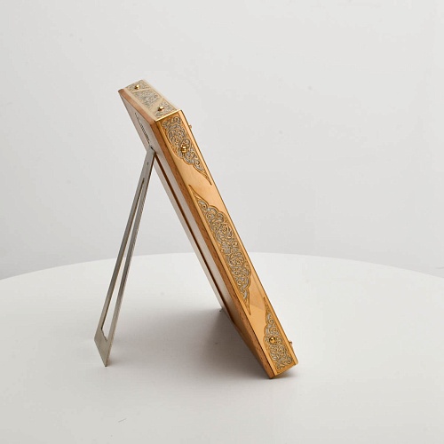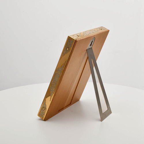 Как когда-то в Древней Руси церкви строились без единого гвоздя, так и в этом изделии мастера Компании «АиР» применили техническую смекалку. Оклад из желтого металла собран без единого сварного шва, детали бережно подогнаны друг к другу и создают цельную композицию.