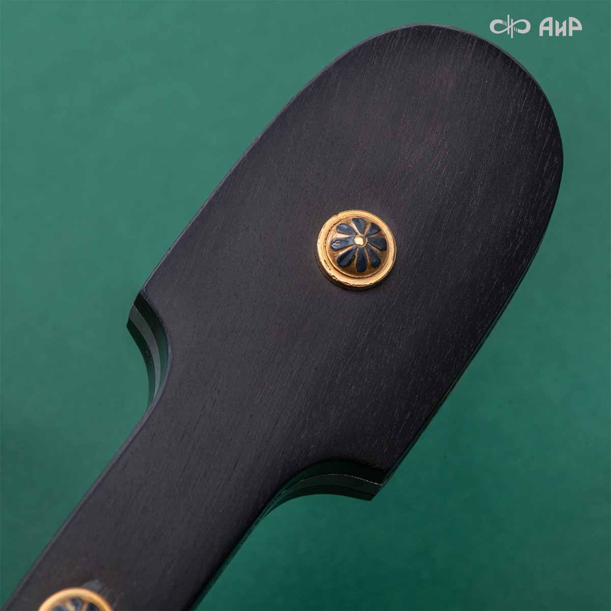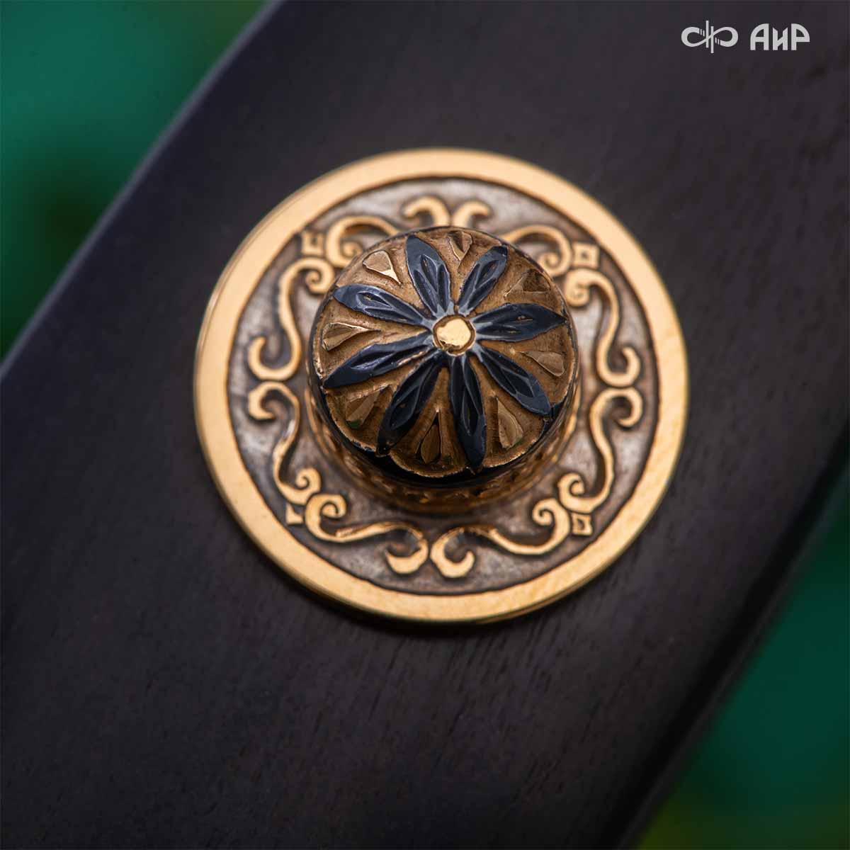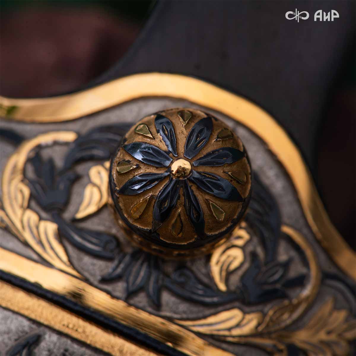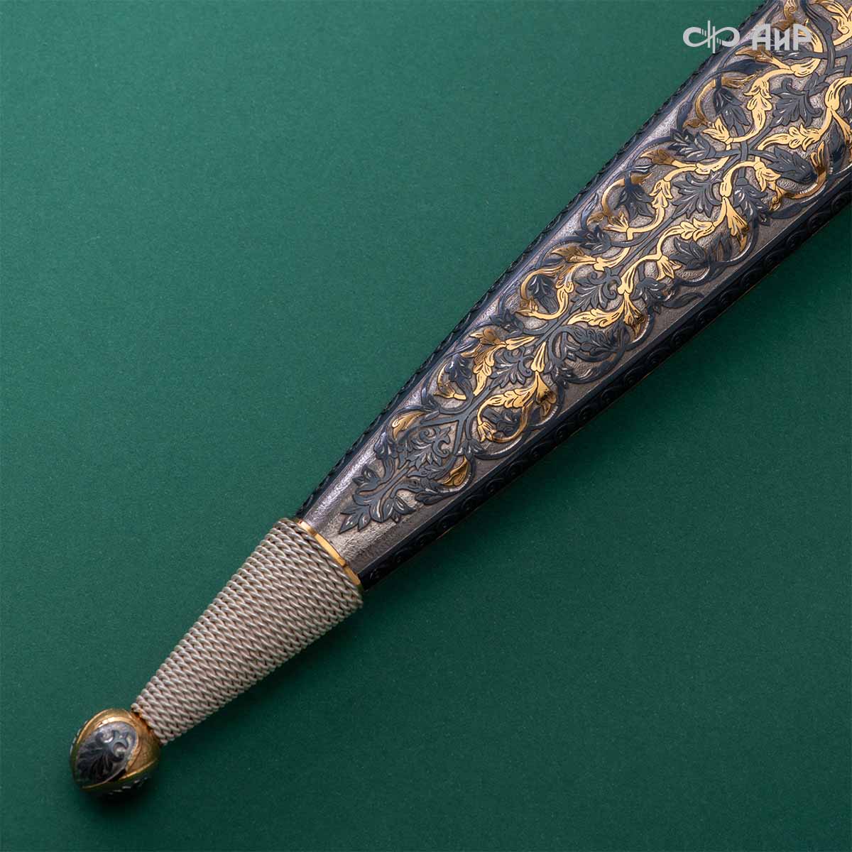 Компания «АиР» изготавливает кинжалы кавказского типа, украшенные золотом, серебром или мельхиором. Каждый кинжал – это яркий пример ручной работы и вдохновенного коллективного творчества. Оружейники, художники и граверы компании достойно хранят и развивают златоустовские традиции декорирования металла. В процессе создания каждого изделия соединяются талант, творческий подход и высокий уровень исполнения. Представленный экземпляр богато украшен орнаментом.