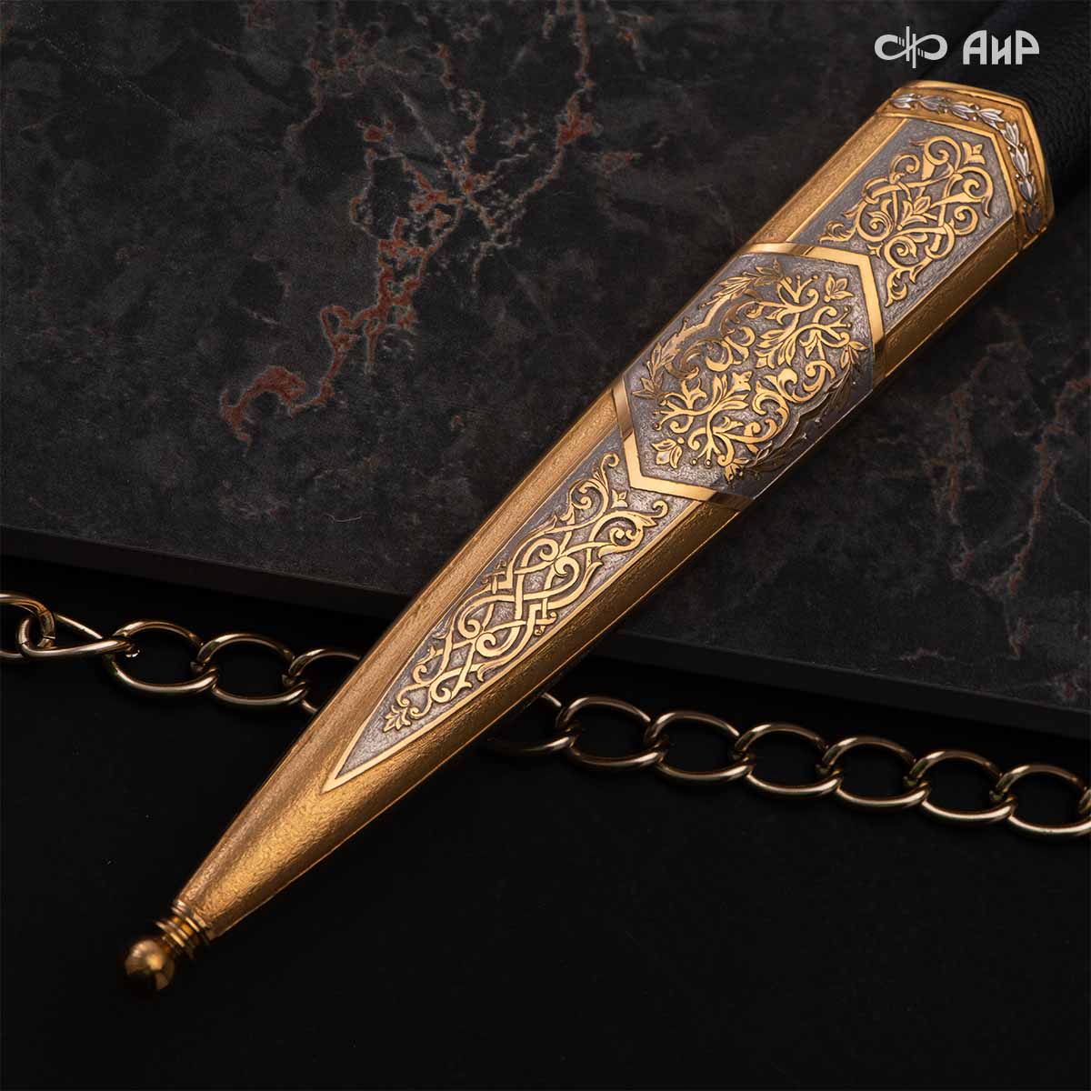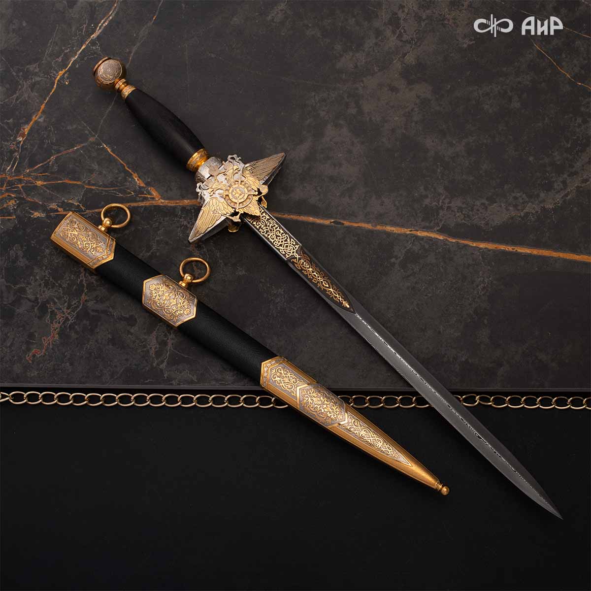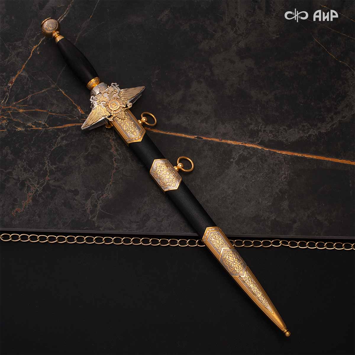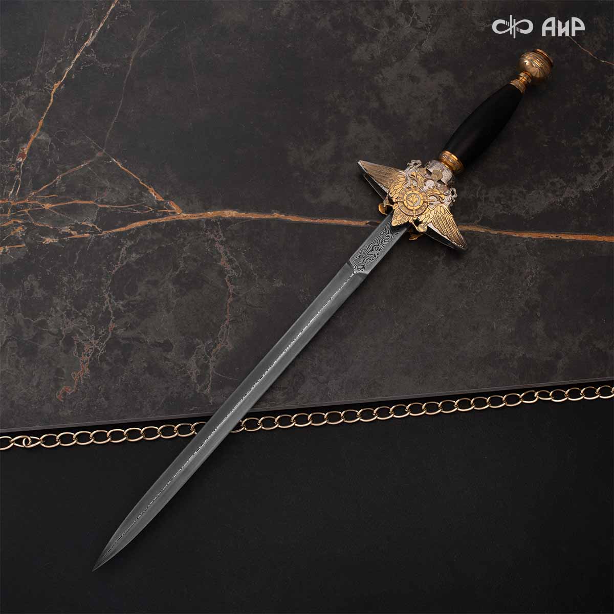 Компания «АиР» изготавливает разнообразные кортики для офицеров, адмиралов и генералов, которые различаются формой крестовины, вариантами украшения клинка и ножен. Преимущества кортиков от Компании «АиР» ─ исключительное качество изделий, творческий подход и высокая художественная ценность клинкового оружия за счет ручного труда и богатейших традиций златоустовских художников, оружейников и граверов.