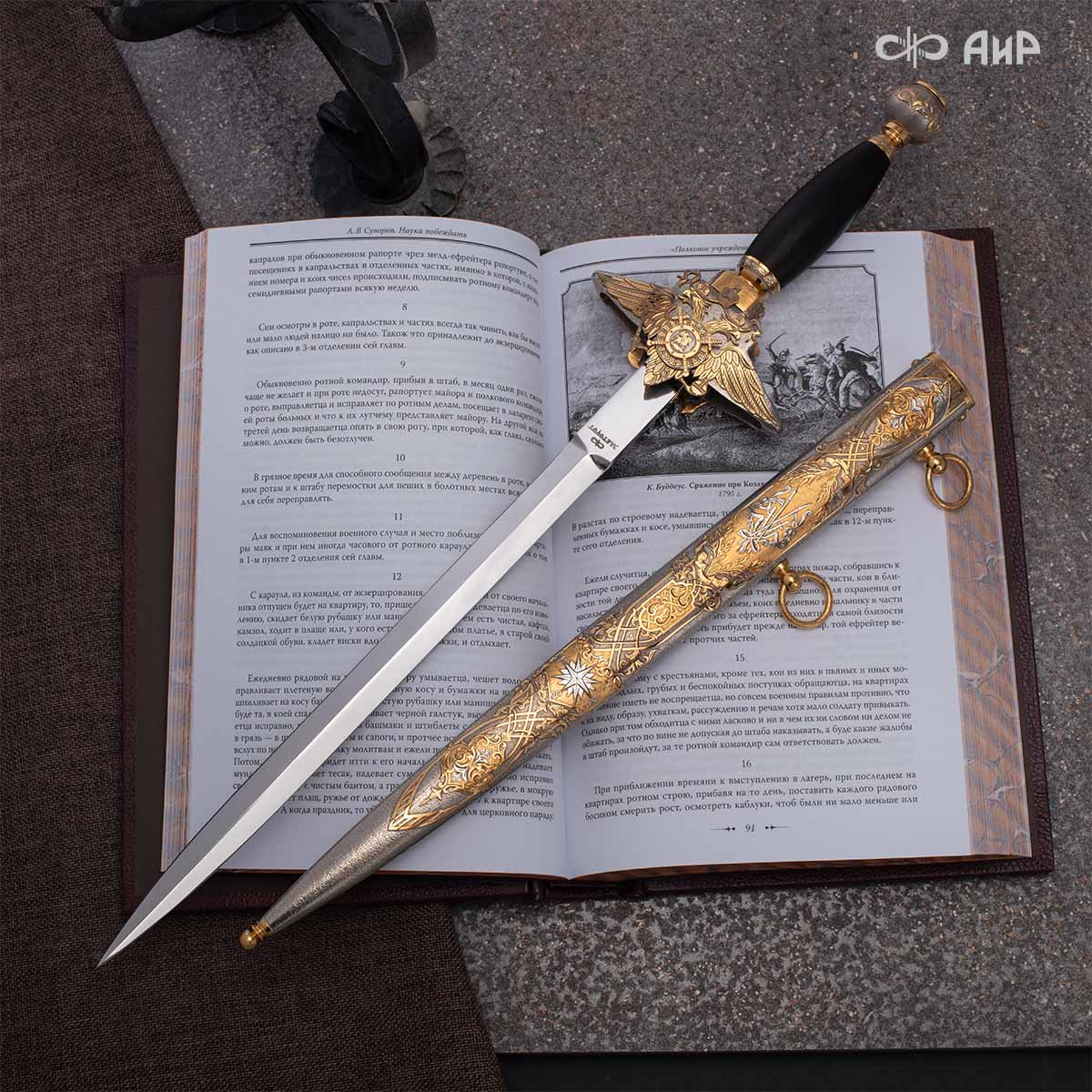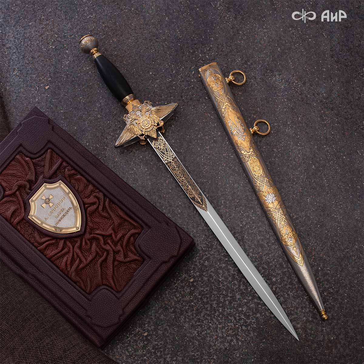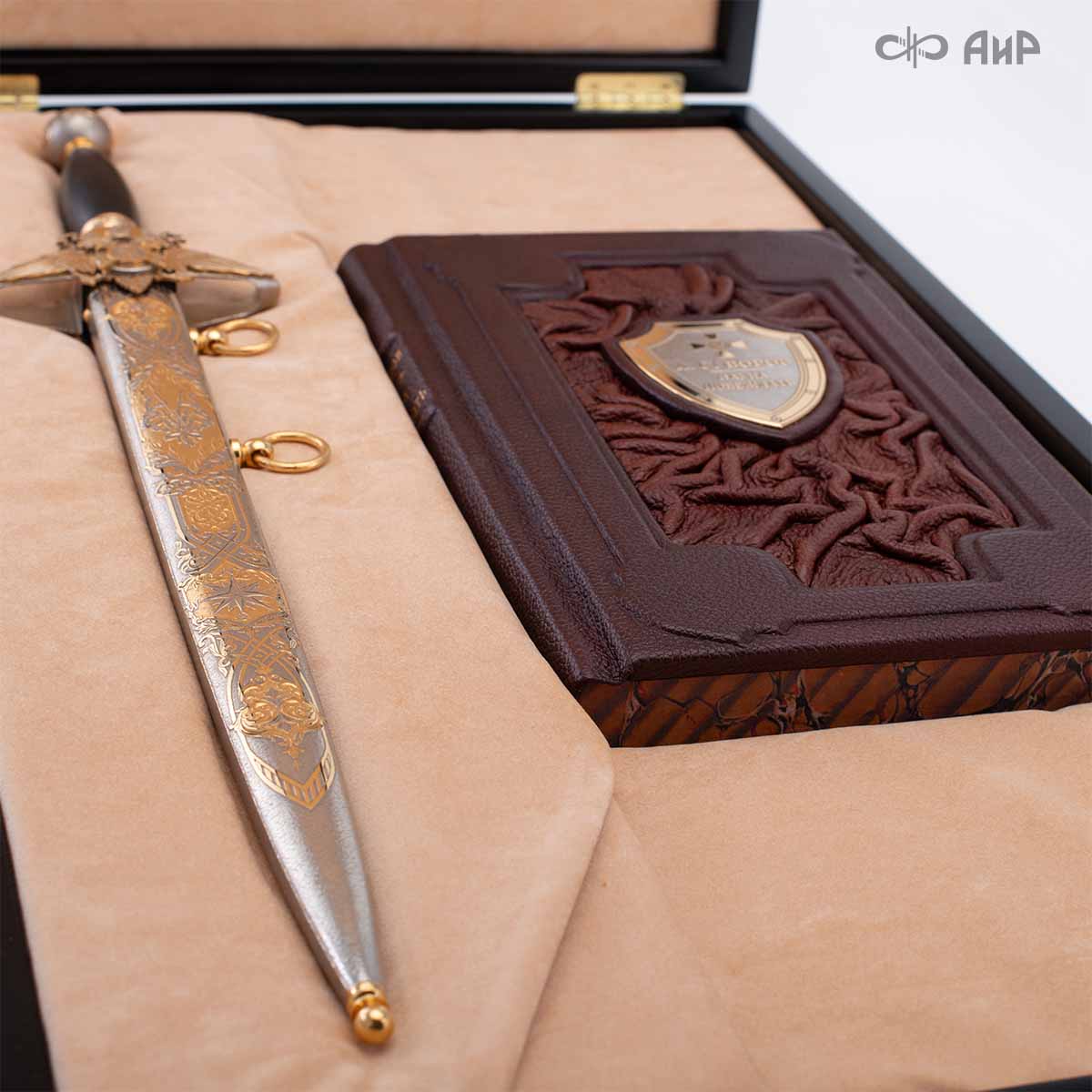 Набор состоит из генеральского кортика и эксклюзивной книги в кожаном переплете. Этот статусный набор станет достойным подарком мужчине любого возраста и ранга и лучше всего продемонстрирует ваше уважение к близким людям и высокопоставленным лицам.