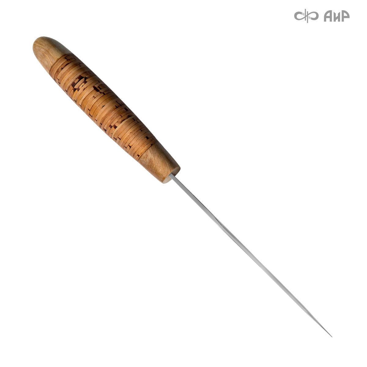 Сравнительно небольшой, универсальный, легкий и прочный нож с клинком, имеющим чуть приспущенный к острию обушок. Спуски в виде линзы на большую часть ширины клинка образуют тонкое, изумительно режущее лезвие. Толщина обуха в 2,6 мм позволяет оставить приличную голомень, что придает ему дополнительную прочность. Рукоятка имеет эргономичную форму, что позволяет пользоваться ножом человеку с любым размером ладони. Гарда умеренной величины защищает пальцы при резе. Монтаж клинка сквозной, неразборный. На навершии рукояти имеется отверстие под темляк. Великолепное решение для тех, кто любит проводить время на природе и вдали от городской суеты. Пользуется неизменной популярностью у покупателей.